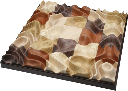 Il s'agit d'un puzzle à reconstituer non pas à partir d'images, mais à partir de formes en 3 dimensions. Il se compose de 25 carrés de bois à replacer les uns par rapport aux autres pour reconstituer les vagues. Chaque carré est découpé dans une essence de bois particulière. Ce modèle est constitué de 5 essences de bois différentes.