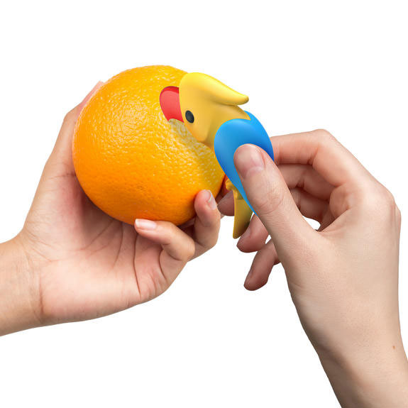 Le bec permet d'inciser l'écorce pour peler ses oranges rapidement et sans effort.