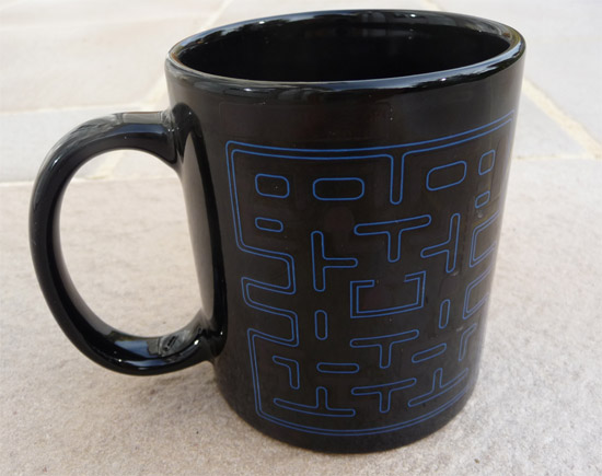 Pac-Man, les petites boules jaunes à manger et les méchants fantômes (ceux-là même qui ont toujours fini par avoir votre peau) apparaissent comme par magie lorsque le mug est remplie d'une boisson chaude.