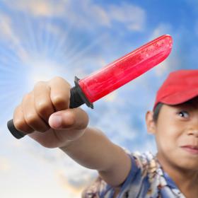 Jouez au samouraï en concoctant de délicieuses glaces en forme de sabres. C'est facile : remplissez les moules de jus de fruit ou de sirop, placez le manche du sabre par-dessus et mettez le tout au congélateur.