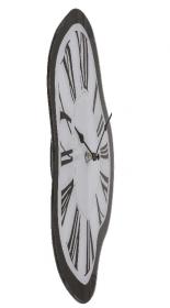 Nous vous proposons déjà depuis 15 ans l'horloge coulante à poser sur un meuble. Voici maintenant l'horloge murale, moins encombrante mais tout aussi surréaliste.