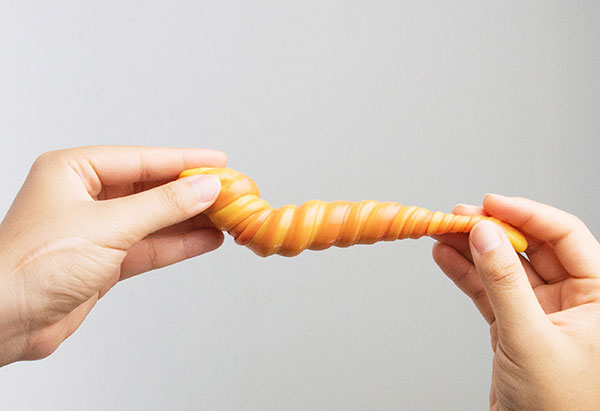 Beside all the "classic" features of magic putties, this one has another feature : its colour changes with temperature ! It's orange at normal temperature. Mix it and after a little while it will become yellow. Leave it and it's orange again.