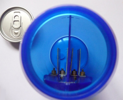 This clock is mounted on a can but instead of soda it's filled with water. Why? Simply put, this clock runs on water and not batteries!!!