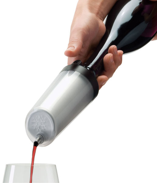 Le principe est pourtant simple comme bonjour. Il s'agit d'un bouchon réfrigéré contenant un tube enroulé de 60 cm de long. On le garde au congélateur. Le moment venu, on le fixe sur le goulot de la bouteille et on sert le vin. Celui-ci parcourt le long tube entouré de glace, et en ressort beaucoup plus frais : la différence de température peut aller de 5 à 10°C. Exemple : dans une pièce à 23°C, servez votre vin à 15°C.