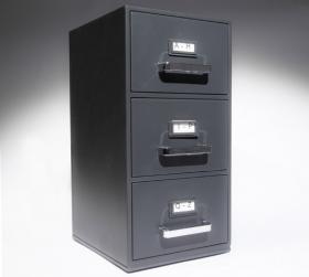 Il existe des grands placards pour ranger ses gros dossiers. Eh bien voici un mini-placard pour ranger ses petites cartes de visites. Logique Monique ! Et on peut même étiqueter les tiroirs pour classer les cartes par ordre alphabétique...