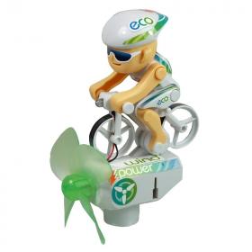 Avec ce coureur cycliste, vous ne pédalerez plus inaperçu. Son moulin prend le vent lorsque vous avancez, ce qui a pour effet de le faire pédaler en même temps que vous. En plus, il sait se rendre utile puisqu'il est équipé d'une lumière alimentée elle aussi à l'énergie éolienne.