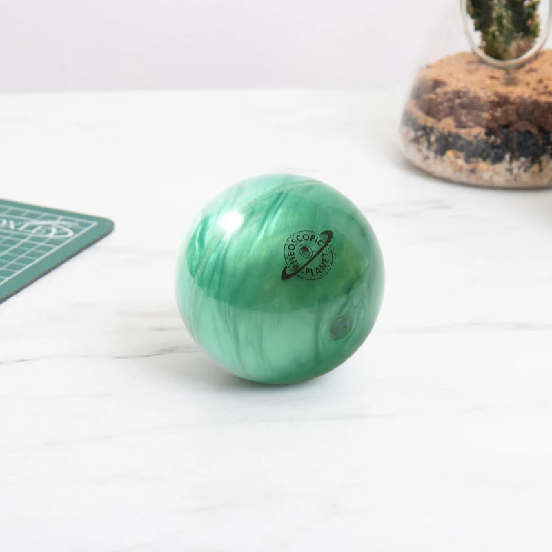 On ne se lasse pas d'observer le liquide tourner dans la sphère lorsqu'on la manipule, et même longtemps après l'avoir reposée.