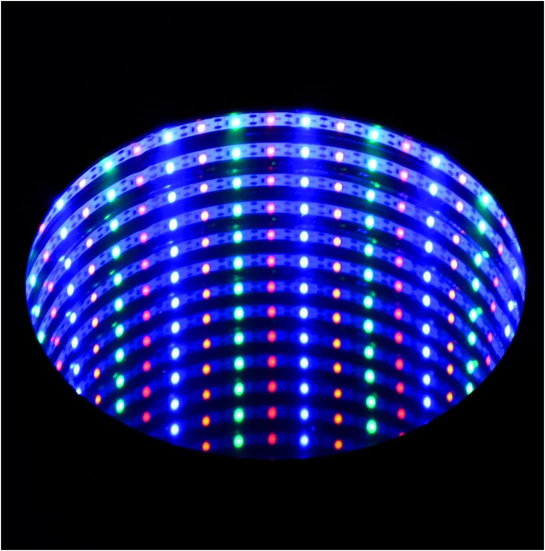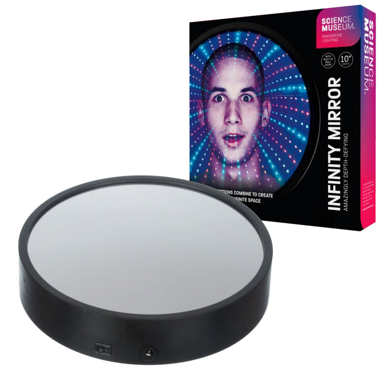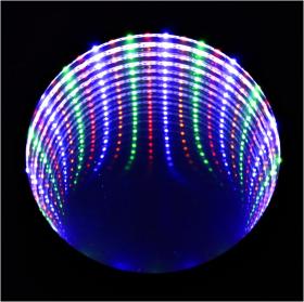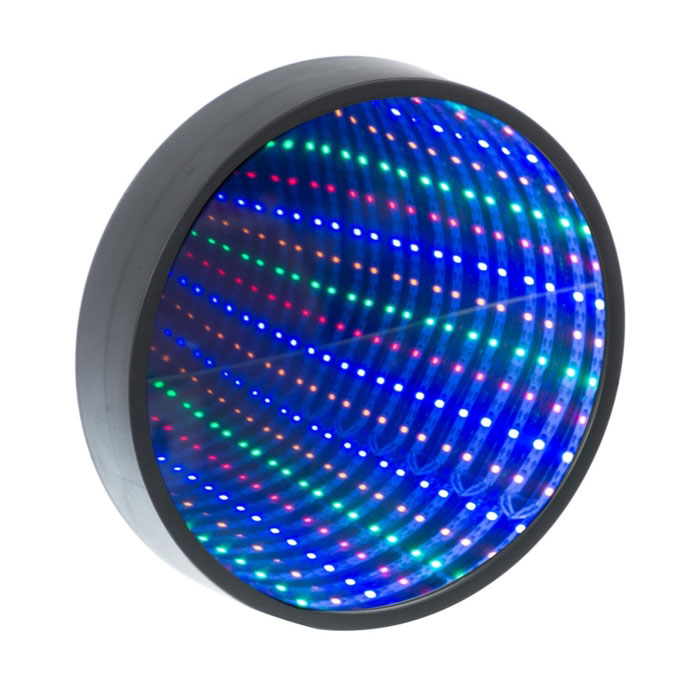 Grâce à la combinaison de 2 miroirs de réflectivité différente entre lesquels se trouvent des LEDs de couleur, ce miroir fascinant donne une incroyable impression d'infini.