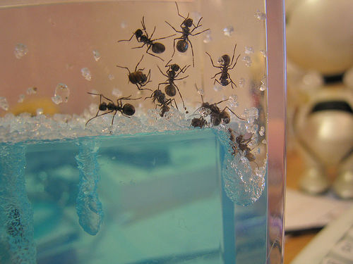 Introduisez une dizaine de fourmis dans l'Antworks et regardez-les organiser leur nouvelle vie. Elle vont inéxorablement être amenées à percer des galeries dans le gel, et à circuler à l'intérieur. On pourrait passer des heures à les regarder faire. C'est plus rigolo et moins commun qu'un poisson dans une aquarium en tous cas !