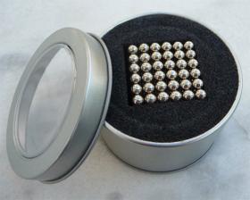 Il s'agit de 216 petites billes magnétiques - des aimants tout simplement. Elles s'attirent entre elles par leurs pôles et vous permettent donc de réaliser toutes sortes de formes géométriques parfaites, en 2 ou 3 dimensions : un cube, une étoile, une spirale, et pourquoi pas un bracelet ou un collier... Vous n'êtes limités que par votre imagination...